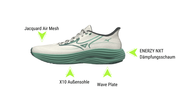The nature-inspired Mizuno Wave technology consists of two EVA foams with different densities and cushioning capacities. These partially cushion the landing with each step and, in combination with the Wave Plate made of hard plastic die repulsionmovement. In this way, the technology provides cushioning and stability.